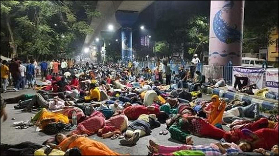 সুপ্রিম কোর্টের আদেশে চাকরিচ্যুত স্কুল শিক্ষকরা সল্টলেকে 'বিকাশ ভবন'-এর বাইরে তাঁদের চাকরি পুনর্বহালের দাবিতে বিক্ষোভ দেখাচ্ছেন।