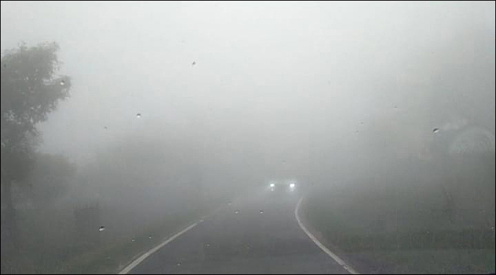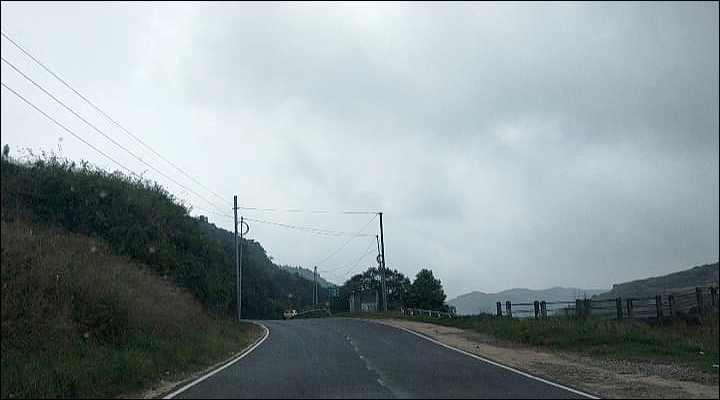 ঘন মেঘে ঢাকা রাস্তা।