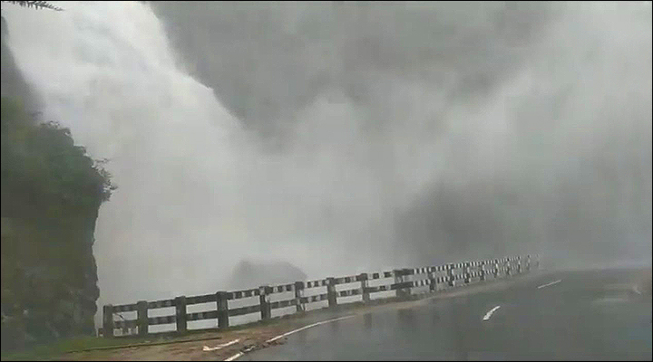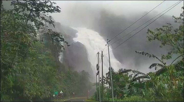 ভরা বর্ষায় Kynrem falls, যে রূপের একমাত্র ডাকনাম 'প্রলয়'-ই হতে পারে। (ইউটিউব থেকে সংগৃহীত ছবি।)
