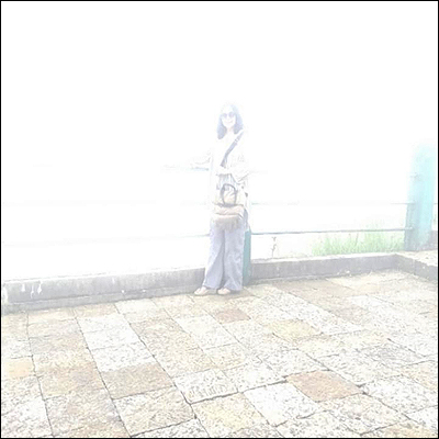 নোহ্ কা লিকাই'-এ রেলিঙের ধারে। মেঘে ঢাকা আমি।