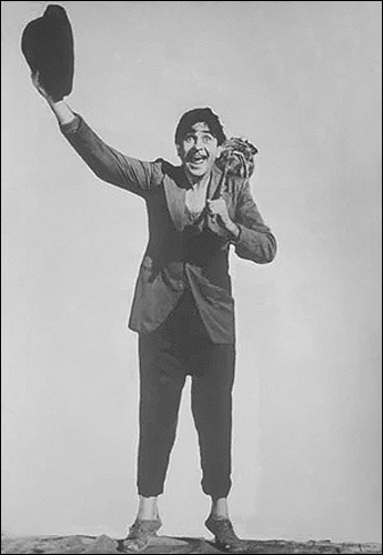 'বরসাত' (১৯৪৯) ছবিতে ভবঘুরে চরিত্রে রাজ কাপুর।
