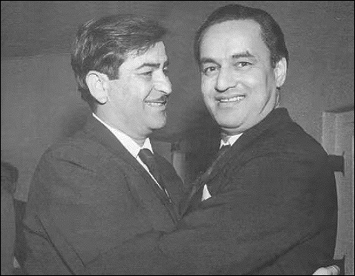 প্রখ্যাত গায়ক মুকেশ-এর সাথে রাজ কাপুর।