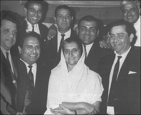 ইন্দিরা গান্ধীর সাথে (বাঁদিক থেকে) শঙ্কর-জয়কিষণ, মেহমুদ, রাজ কাপুর।