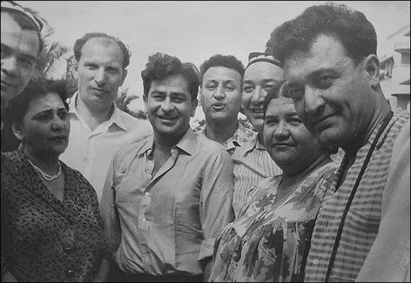 ১৯৫০ সালে ভারতে আগত সোভিয়েত উজবেকিস্তানের লেখকদের একটি প্রতিনিধিদলের সাথে (সামি আবদুকাহোর ইত্যাদি) রাজ কাপুর।