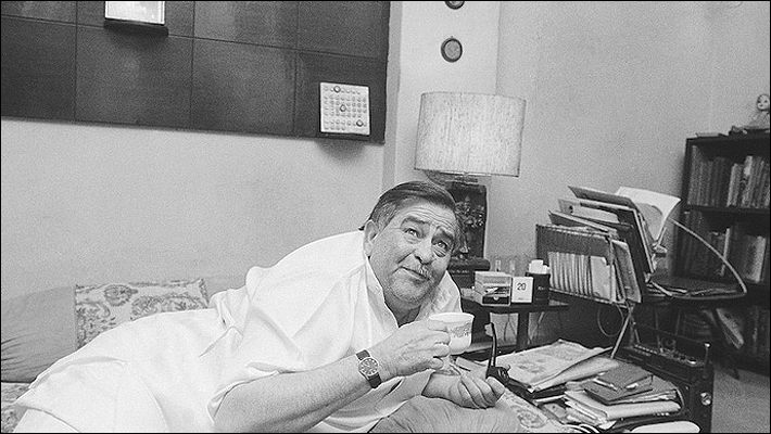 চার্লি চ্যাপলিনের বাসগৃহ ('মানোইর ডি ব্যান'), যা মন্ট্রেক্স-এর কাছে সুইজারল্যান্ডের কর্সিয়ার-সুর-ভেভেতে অবস্থিত সেখানে সফরকালে বিশেষ সাক্ষাৎ করতে এসেছেন (বাঁদিক থেকে) রাজ কাপুর, বিজয় ভাট, হৃষিকেশ মুখার্জি, দেব আনন্দ, পি. টি. জানি এবং নার্গিস।