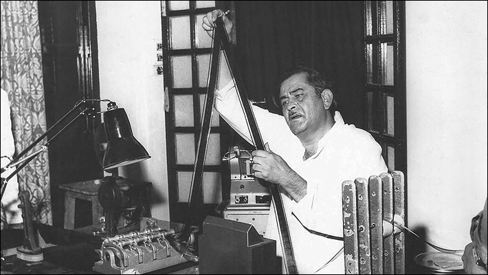 'রাম তেরি গঙ্গা মইলি' (১৯৮৫) ছবির সম্পাদন কক্ষে রাজ কাপুর।